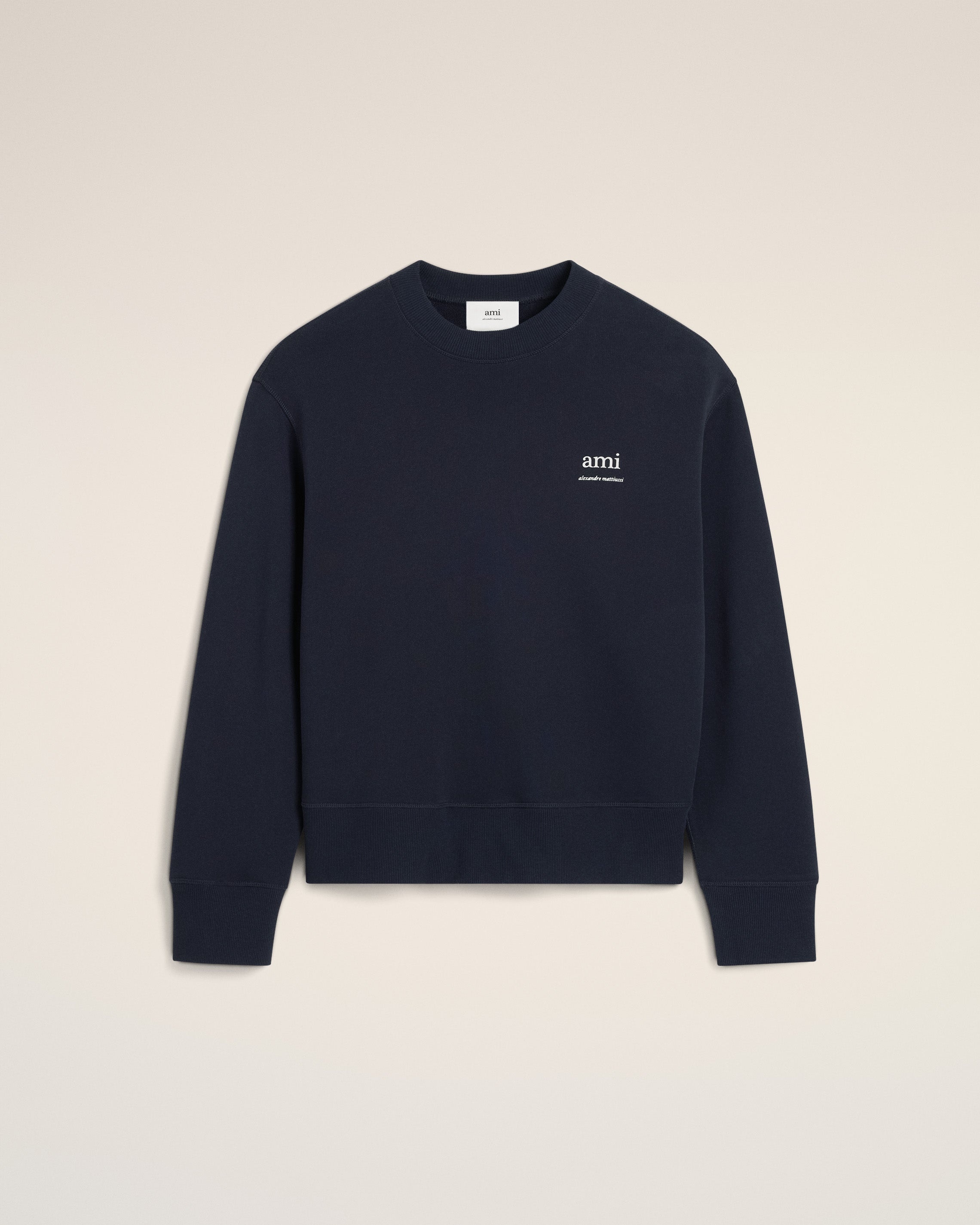 Sweatshirt in cotton fleece. Oversize fit 65 cm center back length (size M) "ami alexandre mattiussi "off-white print Tonal Ami de Coeur embroidery under back neckline Made in Portugal (with love) REF: HSW048.JE0120.4011 SIZE & FIT This item is designed to be worn lose. Take your normal size. Model is 1m83 / 6'0" and is wearing a size M. COMPOSITION & CARE GUIDE 100% Cotton Chlorine prohibited Machine wash at 30°C gentle Do not tumble dry Do not dry clean Cool iron