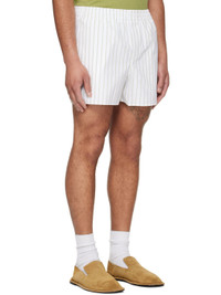 Cotton poplin shorts. · Stripes throughout · Elasticized waistband · Three-pocket styling · Zip fly · Vented outseams · Logo flag at back pocket Supplier color: White/Matcha 100% cotton. Made in Portugal 261482M193001