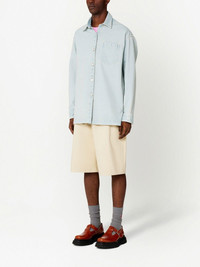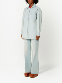 logo-print denim overshirt light blue cotton bleach wash crest motif logo print to the rear classic collar front button fastening front patch pocket long sleeves buttoned cuffs straight hem When buying this unisex item, keep in mind that it is graded in standard men's sizing. Imported Composition Cotton 100% Washing instructions Read Manufacturer Guidelines