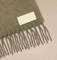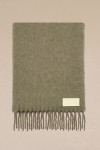 Product Description logo-patch fringed-edge scarf from AMI Paris featuring sugar brown, alpaca wool-blend, logo patch to the front, fringed edge and wraparound style. Oversize scarf in alpaca and polyamide blend. - Felt embossed ami patch color ivory - Size without the fringes: 35x200 cm - Length of the fringes: 10 cm each side - Made in Italy (with love) REF USF417.AA0003281 Size & Fit One size. Materials & Care Instructions 80% Alpaca, 20% Polyamide Do not wash Chlorine prohibited Do not tumble dry Cool iron Dry clean petroleum solvent only on a gentle process Find out more about product traceability.