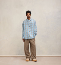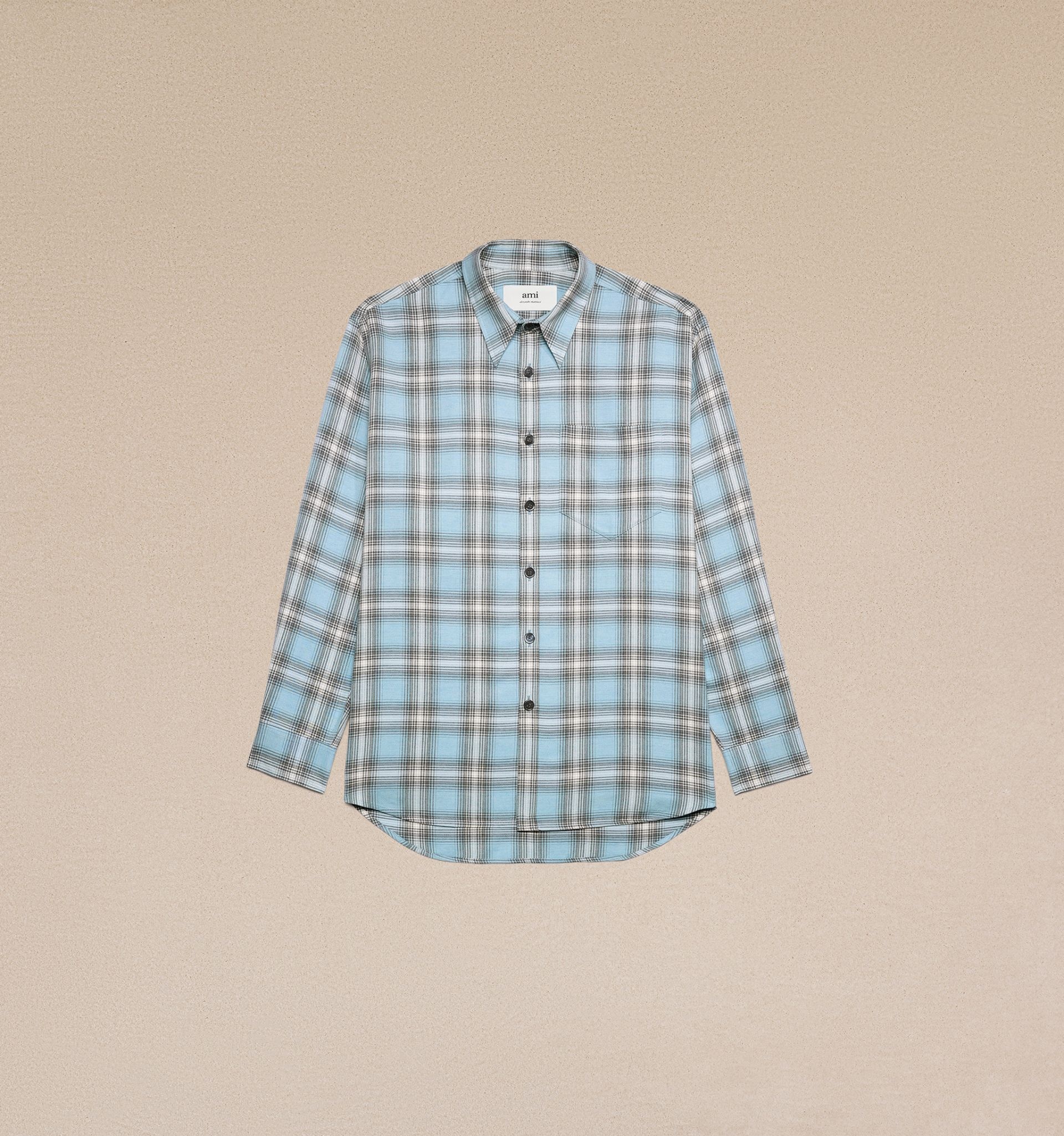 Product Description long-sleeved checkered knitted shirt from AMI Paris featuring sky blue, multicolour, virgin wool blend, check print, pointed flat collar, front button fastening, long sleeves, chest patch pocket and curved hem. Oversize overshirt in cotton corduroy velvet. - Oversized fit - 84 cm center back lenght (size M) - 82 cm center back lenght (size XS) - Unlined - Patch pocket - Horn buttons - Made in Portugal (with love) REF HJK228.VI0010445 Size & Fit This item is designed to be worn lose. Take your normal size. Model is 1m83 / 6'0" and is wearing a size M. Materials & Care Instructions 86% Viscose, 14% New Wool Chlorine prohibited Do not tumble dry Dry clean possible Do not dry clean Cool iron Find out more about product traceability.