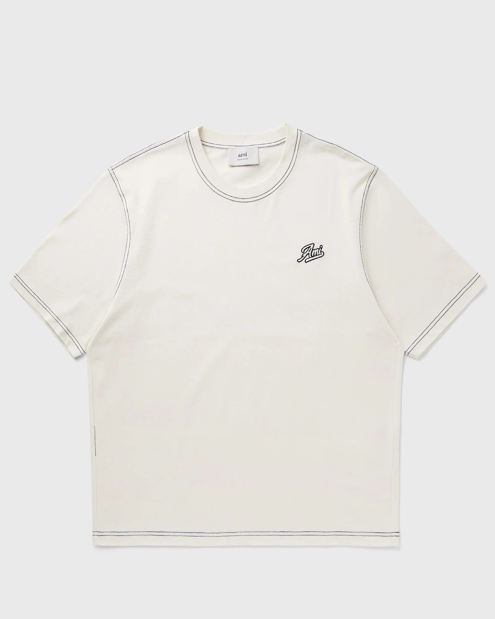 The OVERSIZED SIGNATURE TEE from Ami Paris is the epitome of casual style and modern design. With its generous cut, it not only offers a high level of comfort, but also a relaxed silhouette. Made from high-quality, soft organic cotton, the T-shirt feels pleasant against the skin. A logo embroidery on the chest rounds off the design. - Boxy fit - Ami embroidery on the chest - Color-coordinated logo embroidery under the back neckline - Contrasting topstitching details Article number: HTS029.JE0118-136 Gender: men Color: BLANC CREME Material: 100% Cotton