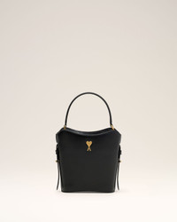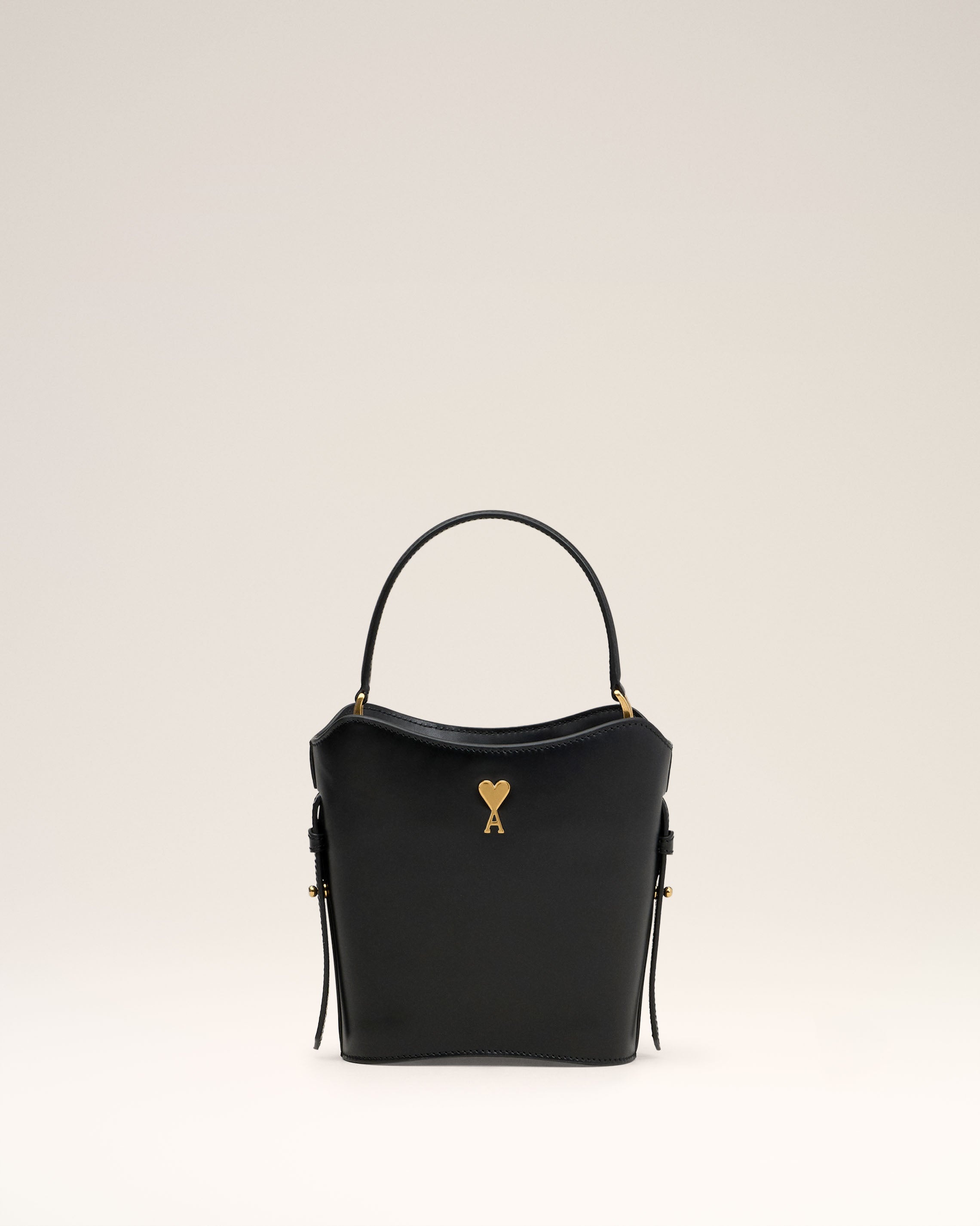 Mini Paris Paris bucket bag in smooth box leather. Suede lambskin lining Ami de Coeur stud One central compartment with lambskin drawstring pouch Adjustable leather strap, hand, shoulder or crossbody carry Metal hardware in vibrated brass color Size: 12.5x17x5 cm, width at the top 17 cm Made in Morocco (with love) REF: ULL012.AL0104.001 SIZE & FIT Size: 12.5x17x5 cm, width at the top 17 cm COMPOSITION & CARE GUIDE 100% Calfskin Our leathergoods are made from delicate materials. To keep the original aspect of the leather as long as possible, please avoid contact with abrasive and oily substances. Make sure not to expose them at the direct light for too long and to wipe them with a soft and dry cloth when wet. To avoid deformations, insure to not overload them. Keep them in their dust bag and safe from humidity.