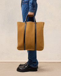 Paris Paris North South tote bag in suede leather and vegetable-tanned textured leather. Natural patina of leather Suede leather lining Ami de Coeur stud One inside patched pocket Adjustable and removable leather strap, crossbody or hand carry Metal hardware in vibrated brass color Size: 37x40.5x12 cm Made in Morocco (with love) REF : ULL147.AL0084.280 SIZE & FIT Size: 37x40.5x12 cm COMPOSITION & CARE GUIDE 100% Cow Leather Our leathergoods are made from delicate materials. To keep the original aspect of the leather as long as possible, please avoid contact with abrasive and oily substances. Make sure not to expose them at the direct light for too long and to wipe them with a soft and dry cloth when wet. To avoid deformations, insure to not overload them. Keep them in their dust bag and safe from humidity.
