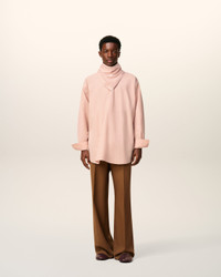 Top in cotton poplin with sewn on bandana collar. Unisex product Oversized fit Bandana collar Buttoned cuffs Mother of pearl buttons Horizontal Ami De Coeur silver plate under back gusset Center back length 87,2 (size XS) Center back length 90,2 (size M) Made in Bulgaria (with love) REF: UTP801.CO0063.680 SIZE & FIT This style is unisex and it's design to be worn oversize. Take your normal size. Man model is 186 cm / 6"1 and is wearing a size M. Woman model is 181 cm / 5"11 and is wearing a size XS. COMPOSITION & CARE GUIDE Main Material : 100% Cotton Chlorine prohibited Do not tumble dry Cool iron Machine wash at 30°c gentle Dry clean gentle