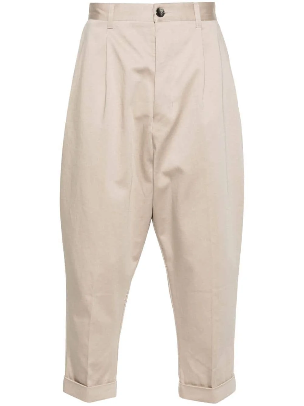 cropped trousers Highlights - Medium beige - Cotton - Pleat detailing - Pressed crease - Belt loops - Two diagonal pockets to the sides - Two rear flap pockets - Turn-up cuffs - Front button fastening Imported Composition Cotton 100% Washing instructions Read Manufacturer Guidelines