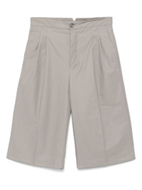 pleat-detail shorts Highlights - Taupe grey - Button fly fastening - Belted waist tabs - Two diagonal pockets to the sides - Rear jetted pocket Imported Composition Cotton 64%, Polyamide 36% SIZE & FIT Model measurements Height 6 ft 0 in(1.84 m) Bust/Chest 37.79 in(96 cm) Hips 37 in(94 cm) Waist 31.49 in(80 cm) FittingInformation Designed for a straight-leg fit, offering an unrestricted and comfortable fit over the leg The adjustable tabs allow for fitted preferences Made from a midweight non-stretch fabric Washing instructions Machine Wash