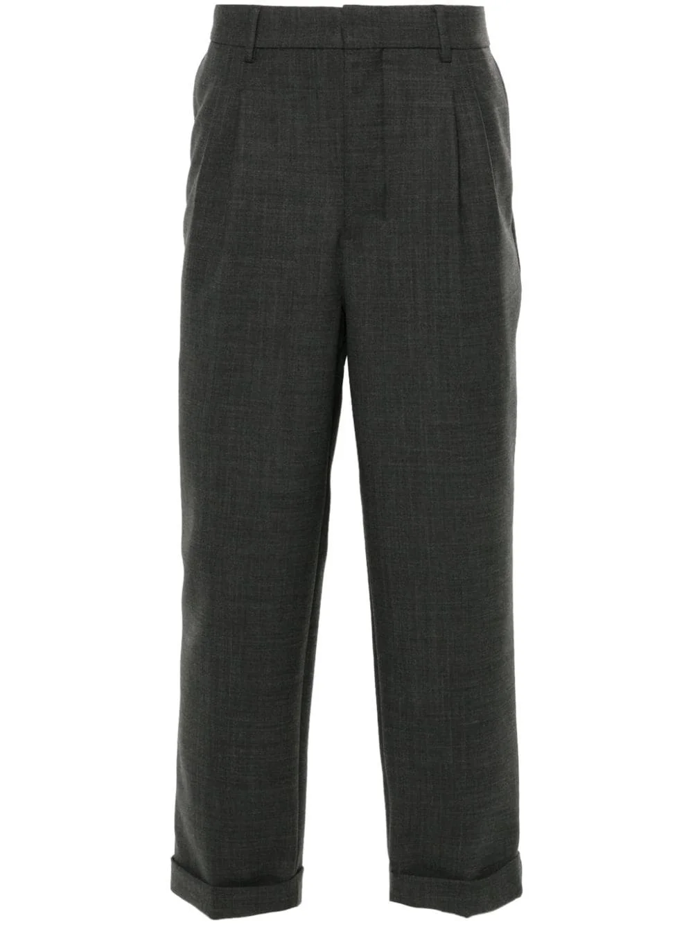 pleated trousers Highlights - Dark grey - Textured finish - Two side slash pockets - Pleat detailing - Two side slash pockets - Pressed crease - Two rear welt pockets - Turn-up hem - Tapered leg - Button fly fastening Imported Composition Lining: Polyester 100% Outer: Polyester 53%, Virgin Wool 43%, Spandex/Elastane 4% SIZE & FIT Model measurements Height 6 ft 2 in(1.87 m) Bust/Chest 38.18 in(97 cm) Hips 36.61 in(93 cm) Waist 29.13 in(74 cm) FittingInformation Designed for a tapered leg, offering a loose unrestricted fit over the leg with a closer fit towards the ankle Made from a midweight fabric This piece fits true to size – take your usual size