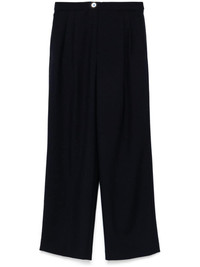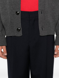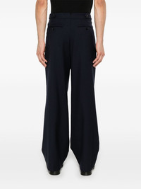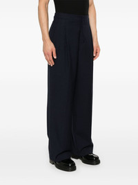 pleated trousers Highlights - Navy blue - Virgin wool - Textured finish - Pleat detailing - Two side slash pockets - Pressed crease - Adjustable waist strap - Two rear jetted pockets - Wide leg - Concealed front button fly - When buying this unisex item, keep in mind that it is graded in standard men's sizing. Imported Composition Lining: Polyester 100% Outer: Virgin Wool 100% SIZE & FIT Model measurements Height 6 ft 1 in(1.85 m) Bust/Chest 35.82 in(91 cm) Hips 37.79 in(96 cm) Waist 29.13 in(74 cm) FittingInformation This piece is unisex and is designed with a wide-leg, whether you usually select women's or men's sizes The adjustable tabs allow for fitted preferences Made from a midweight non-stretch fabric