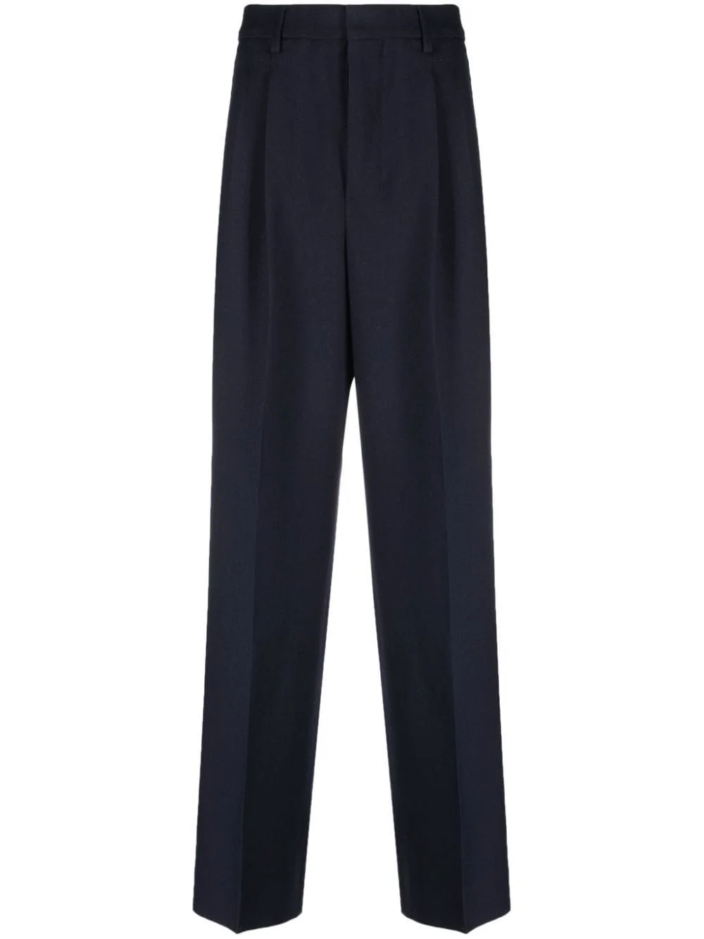 straight-leg tailored trousers Highlights - Navy blue - Belt loops - Pleat detailing - Straight leg - Concealed front fastening - Two side inset pockets - Two rear button-fastening jetted pockets Imported Composition Lining: Polyester 100% Outer: Virgin Wool 100%