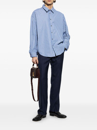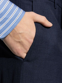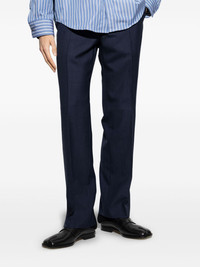 pressed-crease tapered trousers Highlights - Navy blue - Concealed front fastening - Two side slit pockets - Belt loops Imported Composition Virgin Wool 100% SIZE & FIT Measurement FRONT RISE 11.81 in(30 cm) INSIDE LEG 32.28 in(82 cm) HIPS 43.3 in(110 cm)
