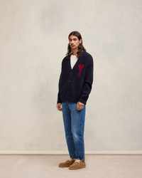 Cardigan in felted merino wool. Classic fit Unisex product Jersey stitch Reversed intarsia-knitted red Ami de Coeur Inside out seams 65 cm center back length (size M) 58 cm center back length (size XS) Made in Italy (with love) REF : UKC006.018.4005 SIZE & FIT This style is unisex. For man, take your normal size. For woman, take one size down than your usual size. Man model is 1m85 / 6'1" and is wearing a size M. Woman model is 1m79 / 5'9" and is wearing a size XS. COMPOSITION & CARE GUIDE 100% Wool Hand wash low temperature Chlorine prohibited Do not tumble dry Dry flat Cool iron Dry clean possible