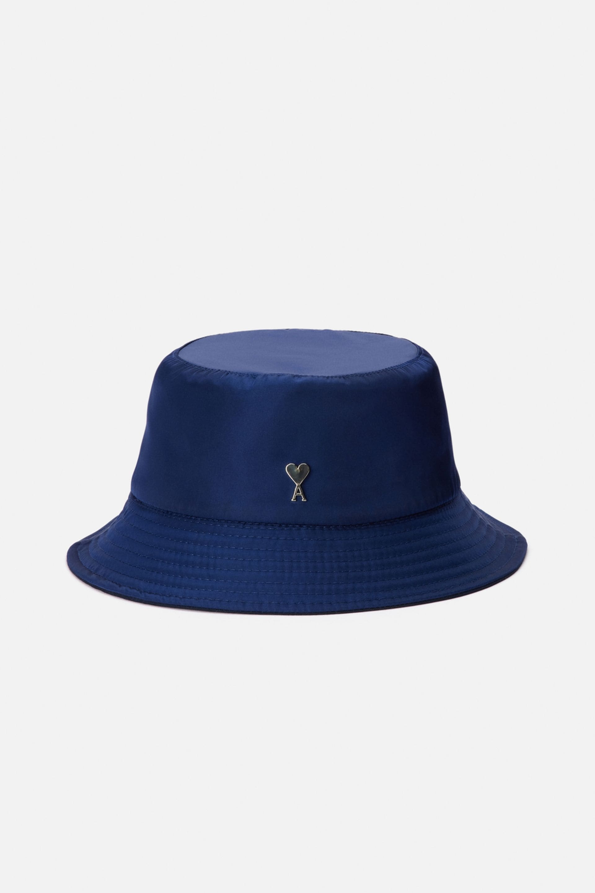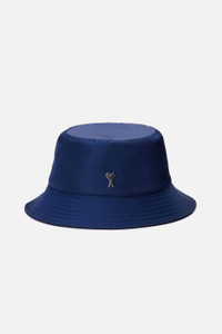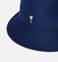 Product Description logo-plaque bucket hat from AMI Paris featuring navy blue, cotton blend, signature Ami de Coeur monogram motif, silver-tone logo plaque, flat crown and dropped narrow brim. Reversible bucket hat in water repellent nylon canvas and coton gardine. - Ami de Cœur metallic studs - "Ami Alexandre Mattiussi" embroidery - Made in Italy (with love) REF UHA200.274491 Materials & Care Instructions 96% Polyamide 4% Polyurethane Lining: 100% Cotton Do not wash Do not bleach Do not tumble dry Do not iron Dry clean possible