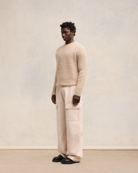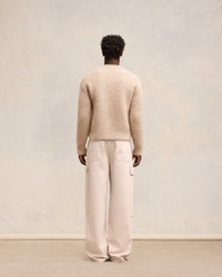 Sweater in chunky hairy mohair alpaca ribs. Unisex product English ribs 62 cm center back length (size M) 58 cm center back length (size XS) Made in Italy (with love) REF : UKS031.KN0054.250 Responsible Wool Standard SIZE & FIT This style is unisex. For man, take your normal size. For woman, take one size down than your usual size. Man model is 1m85 / 6'1" and is wearing a size M. Woman model is 1m78 / 5'10" and is wearing a size XS. COMPOSITION & CARE GUIDE 41% Alpaca, 41% Mohair, 16% Polyamide, 2% Elastane Hand wash low temperature Chlorine prohibited Do not tumble dry Dry flat Cool iron Dry clean possible