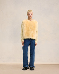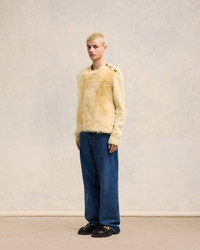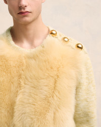 Sweater in chunky wool chine. Jersey stitch Front body with long hair lamb shearling 58 cm center back length (size M) Shoulder opening with domed metal shank buttons engraved Made in Italy (with love) REF : UKS056.KN0051.2009 SIZE & FIT This style is unisex. For man, take your normal size. For woman, take one size down than your usual size. Man model is 1m82 / 6'0" and is wearing a size M. Woman model is 1m78 / 5'10" and is wearing a size XS. COMPOSITION & CARE GUIDE 100% Wool Do not wash Chlorine prohibited Do not tumble dry Dry flat Do not iron Dry clean petroleum solvent only on a gentle process Profesional dry cleaning by a specialist in luxury
