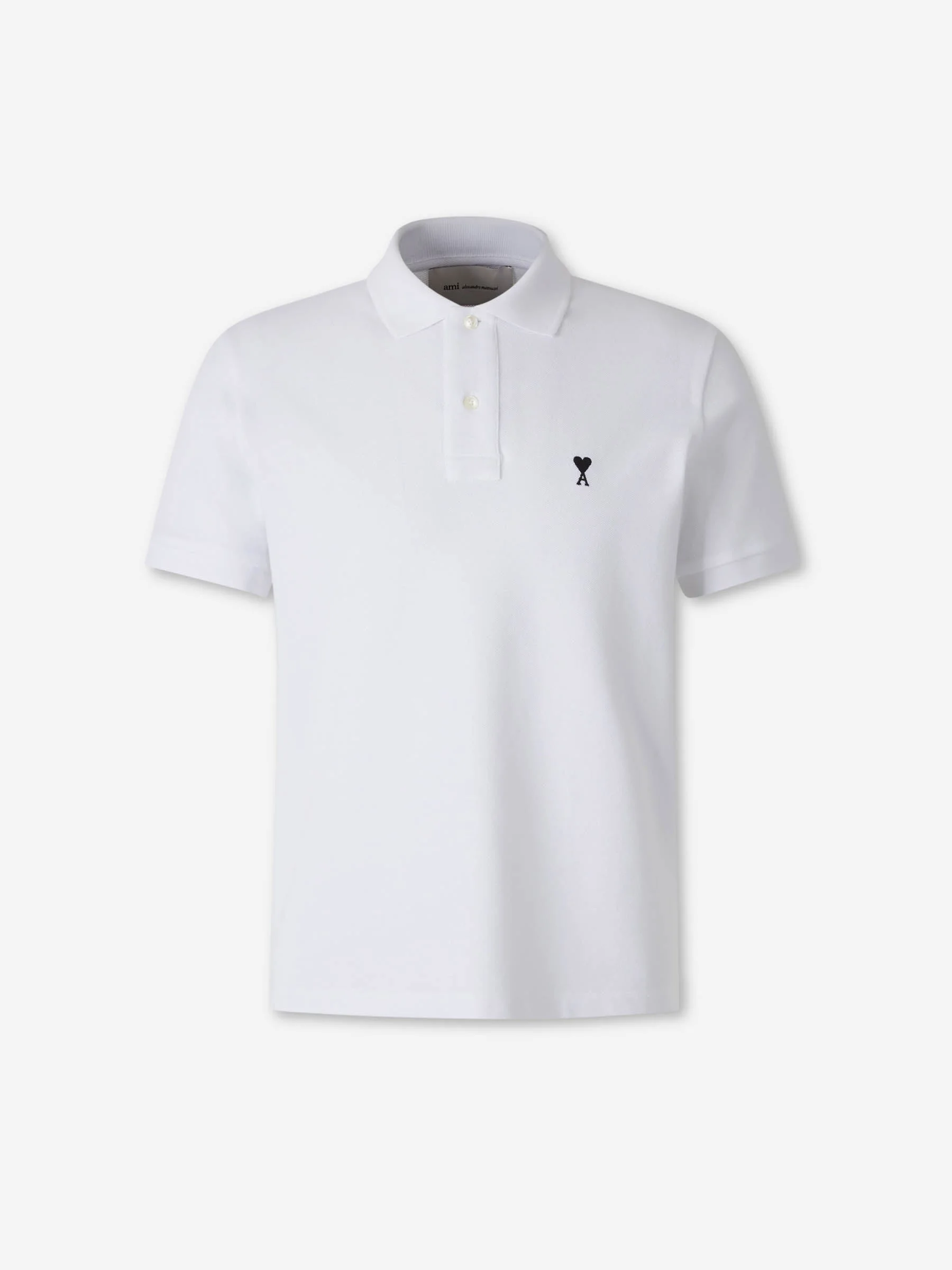 SKU: 552-001686 01 BRAND ID: HPL411.760 Polo Shirt By Ami Paris • Relaxed cut • Made from cotton pique knit • Short sleeve • Embroidered logo on the chest • Striped ribbed collar and cuffs • Straight hem • Buttoned polo collar • Composition: 100% cotton • Made in: Portugal