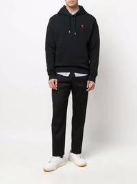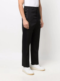 side-stripe tailored trousers AMI Paris presents its own take on tailoring with these black straight-leg trousers. Made from virgin wool, this refined pair is subtly elevated by a tonal satin stripe to the side of each leg. Imported Composition Lining: Polyester 100% Outer: Virgin Wool 100%
