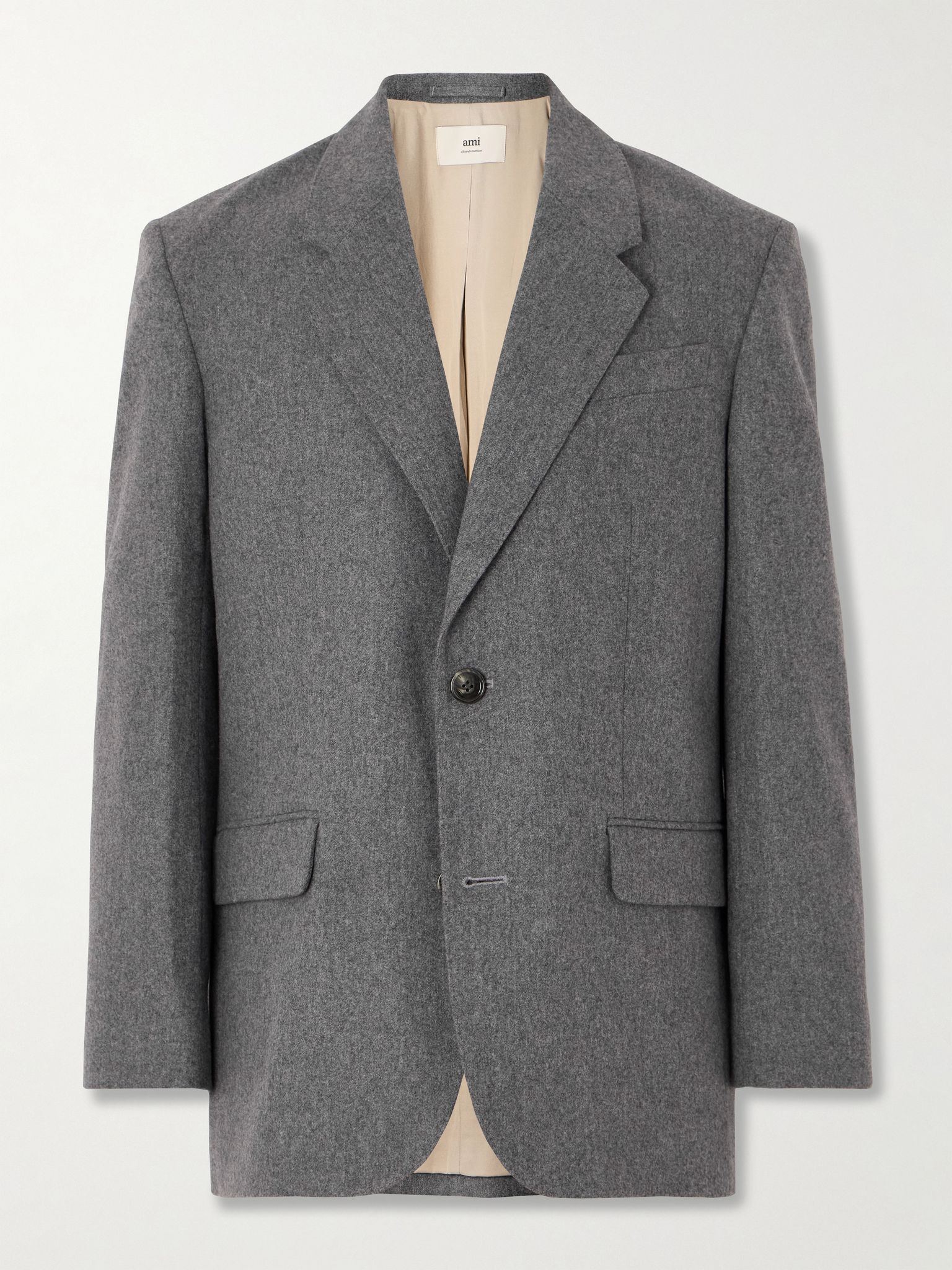 Thanks to its relaxed, boxy fit, AMI PARIS' blazer feels fresh and contemporary. It's tailored from wool-flannel with plenty of texture. The full lining ensures smooth layering. Size & Fit - Those who are above 6'1"/ 185cm may wish to take the next size up - Tailored for a relaxed fit - Internal shoulder pads - Mid-weight, non-stretchy fabric - Model is shown wearing an IT 50 - Model measures: chest 38"/ 96cm, height 6'2"/ 188cm Details & Care - Grey wool-flannel - Notch lapels, functioning buttoned cuffs, chest welt pocket, two front flap pockets, double back vent, internal pockets, fully lined - Two-button fastening - 100% wool - Dry clean