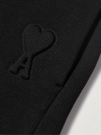 Let's be honest – when we work from home, it's the sweats we reach for. AMI PARIS' shorts make an easy choice for casual days, with their plush, cotton-blend jersey handle and relaxed fit. Note the embossed 'Ami de Coeur' emblem on the left leg. Size & Fit - Fits true to size. Take your normal size - Relaxed-straight leg, low-crotch style - Drawstring at the waist - Mid-weight, slightly stretchy fabric - Model is shown wearing a S - Model measures: waist size 30, height 6'1"/ 185cm Details & Care - Black cotton-blend jersey - 69% cotton, 31% polyester - Machine wash