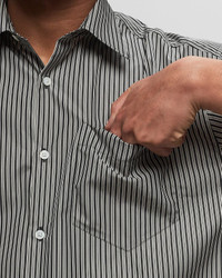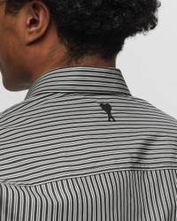 The Ami Paris Boxy Fit SL Shirt is made of striped cotton poplin in a relaxed, boxy fit. It features a button placket with mother of pearl buttons and is rounded off with a chest pocket. - Short sleeves - Button placket - Mother of pearl buttons Article Number: HSH216.CO0066-0013 Gender: Men Color: NOIR/CRAIE Material: 100% Cotton