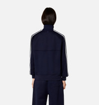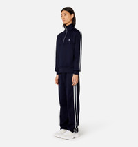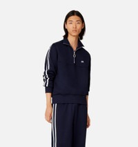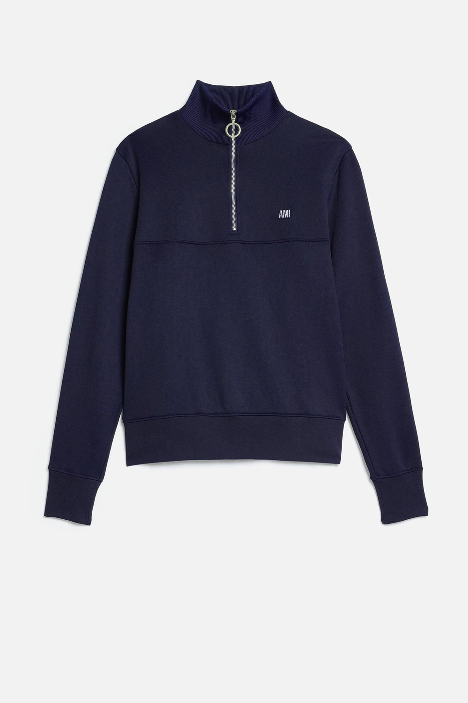 Product Description striped short-zip pullover sweatshirt from AMI Paris featuring blue/white, stripe trim, signature Ami de Coeur monogram motif, high neck, short front zip fastening, long sleeves and straight hem. Zipped Sweatshirt in shiny technical fleece. - Classic fit - 62 cm middle back (size M) - Embroidered Ami patch - Applied knitted ribbon on sleeves - Nickel color metal zipper simple sliders - Puller Ami engraved - Tonal Ami embroidery under back neckline - Made in Bulgaria (with love) REF HSW518.JE0005491 Size & Fit Fits true to size. Take your normal size. Materials & Care Instructions 60% Polyamide, 40% Cotton Machine wash at 30°C gentle Do not bleach Do not tumble dry Cool iron Dry clean gentle Reshape whilst damp Wash inside out Iron inside out Wash with similar colours