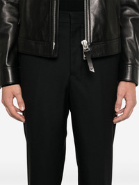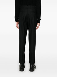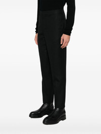 tailored trousers Highlights - Black - Virgin wool - Tailored design - Belt loops - Two side slash pockets - Pressed crease - Full-length - Two rear welt pockets - Concealed front button, hook and zip fastening Imported Composition Outer: Virgin Wool 100% Lining: Polyester 100% SIZE & FIT Model measurements Height 6 ft 2 in(1.87 m) Bust/Chest 36.22 in(92 cm) Hips 35.43 in(90 cm) Waist 29.13 in(74 cm) FittingInformation Designed for a slim fit, offering a comfortable fit that sits just away from the leg Made from a midweight non-stretch fabric This piece fits true to size – take your usual size