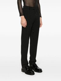 tailored virgin wool trousers Highlights - Black - Virgin wool - Textured finish - Pinstripe pattern - Tailored design - Pressed crease - Concealed front button, hook and zip fastening - Tapered leg - Two side slit pockets - Two rear button-fastening jetted pockets Imported Composition Lining: Polyester 100% Outer: Virgin Wool 100%