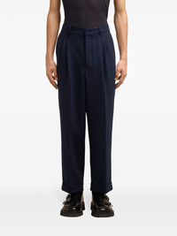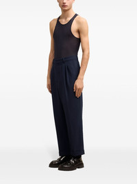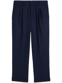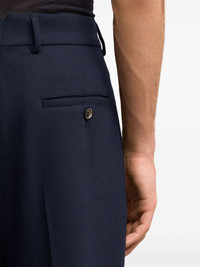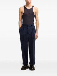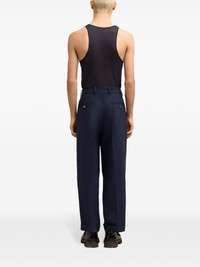 tapered-leg trousers Highlights - Navy blue - Pleat detailing - Pressed crease - Belt loops - Concealed fly and button fastening - High-waisted - Tapered leg - Two side slash pockets - Two rear button-fastening jetted pockets - Turn-up hem Imported Composition Outer: Polyester 53%, Virgin Wool 43%, Elastane 4% Lining: Polyester 100%