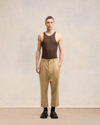 Carrot oversized fit trousers in compact cotton satin. Oversized carrot fit 20,5 cm bottom leg width (Size M) Front pleats Horn buttons Buttoned fly Cuffed hems "ami alexandre mattiussi" patch on the back Made in Portugal (with love) REF : HTR121.CO0082.255 SIZE & FIT Fits true to size. Take your normal size. Model is 1m84 / 6'0" and is wearing a size M. COMPOSITION & CARE GUIDE 100% Cotton Do not wash Chlorine prohibited Do not tumble dry Cool iron Dry clean petroleum solvent only on a gentle process