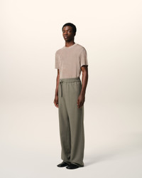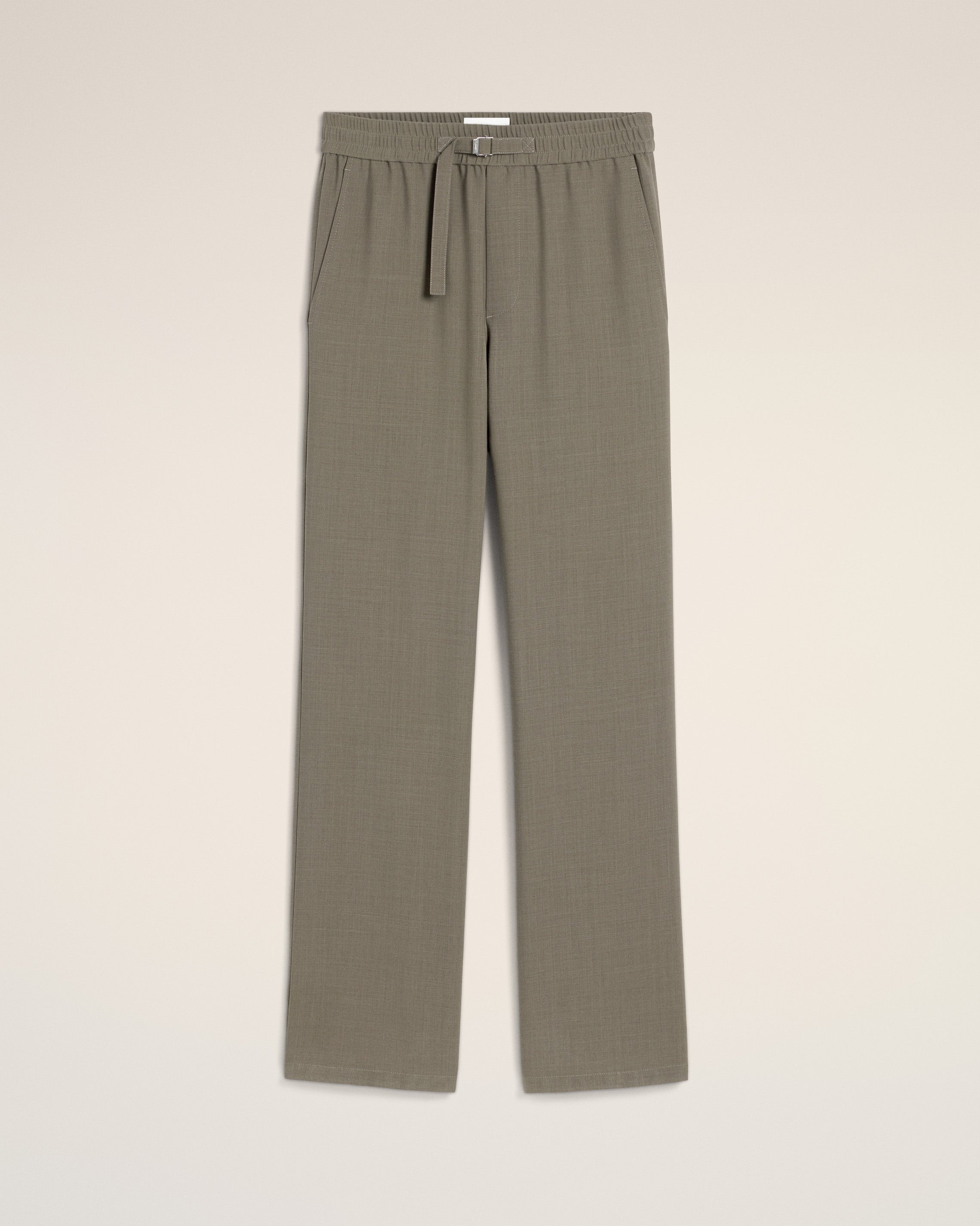 Straight fit elasticated trousers in light wool gabardine. 28 cm bottom leg width (size M) Elasticated waist Straight leg Strap with buckle in nickel color Fake fly without buttons Patch pockets on the back Ami de Coeur rivet on the back pocket Made in Romania (with love) REF: HTR214.WV0066.0953 SIZE & FIT Fits true to size. Take your normal size. Model is 1m86 / 6'1" and is wearing a size M. COMPOSITION & CARE GUIDE 100% New Wool Do not wash Chlorine prohibited Do not tumble dry Cool iron Dry clean petroleum solvent only on a gentle process
