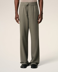 TAUPE WOOL STRAIGHT FIT ELASTICATED TROUSERS