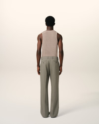 Straight fit trousers in light wool gabardine. Straight fit 23 cm bottom leg width (size 40) Front lining to knees Zip fly V detail on the back "ami" waistband Buttoned back pockets Horn buttons Made in Tunisia (with love) REF: HTR506.WV0066.0953 SIZE & FIT Fits true to size. Take your normal size. Model is 1m86 / 6'1" and is wearing a size 40. COMPOSITION & CARE GUIDE 100% New Wool Do not wash Chlorine prohibited Do not tumble dry Cool iron Dry clean petroleum solvent only on a gentle process