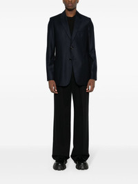 single-breasted virgin wool blazer In a nod to AMI Paris' refined side, this blazer is finished with classic notched lapels and two patch pockets. Highlights - Navy blue - Virgin wool - Notched lapels - Long sleeves - Buttoned cuffs - Front button fastening - Chest welt pocket - Two front patch pockets - American rear vent - Full lining - Front button fastening Imported Composition Lining: Cotton 50%, Polyester 50% Outer: Virgin Wool 100% SIZE & FIT Model measurements Height 6 ft 0 in(1.84 m) Bust/Chest 34.64 in(88 cm) Hips 35.03 in(89 cm) Waist 27.95 in(71 cm) FittingInformation Designed for a regular fit, allowing for a comfortably loose fit throughout the body The internal shoulder pads offer a structured shape Made from a midweight non-stretch fabric This piece fits true to size – take your usual size Measurement CHEST 40.98 in(104.1 cm) LENGTH 30.98 in(78.7 cm) WAIST 37.99 in(96.5 cm) SLEEVE LENGTH 25.98 in(66 cm)