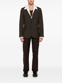 virgin wool blazer Highlights - Coffee brown - Virgin wool - Gabardine weave - Front button fastening - Notched lapels - Shoulder pads - Long sleeves - Buttoned cuffs - Chest welt pocket - Dart detailing - Two side flap pockets - English rear vents - Full lining - Straight hem Imported Composition Lining: Cotton 50%, Polyester 50% Outer: Virgin Wool 100% SIZE & FIT Model measurements Height 6 ft 2 in(1.87 m) Bust/Chest 37.79 in(96 cm) Hips 37.79 in(96 cm) Waist 30.31 in(77 cm) FittingInformation Designed for a slim fit, offering a comfortable fit that sits just away from the body The internal shoulder pads offer a structured shape Made from a midweight non-stretch fabric