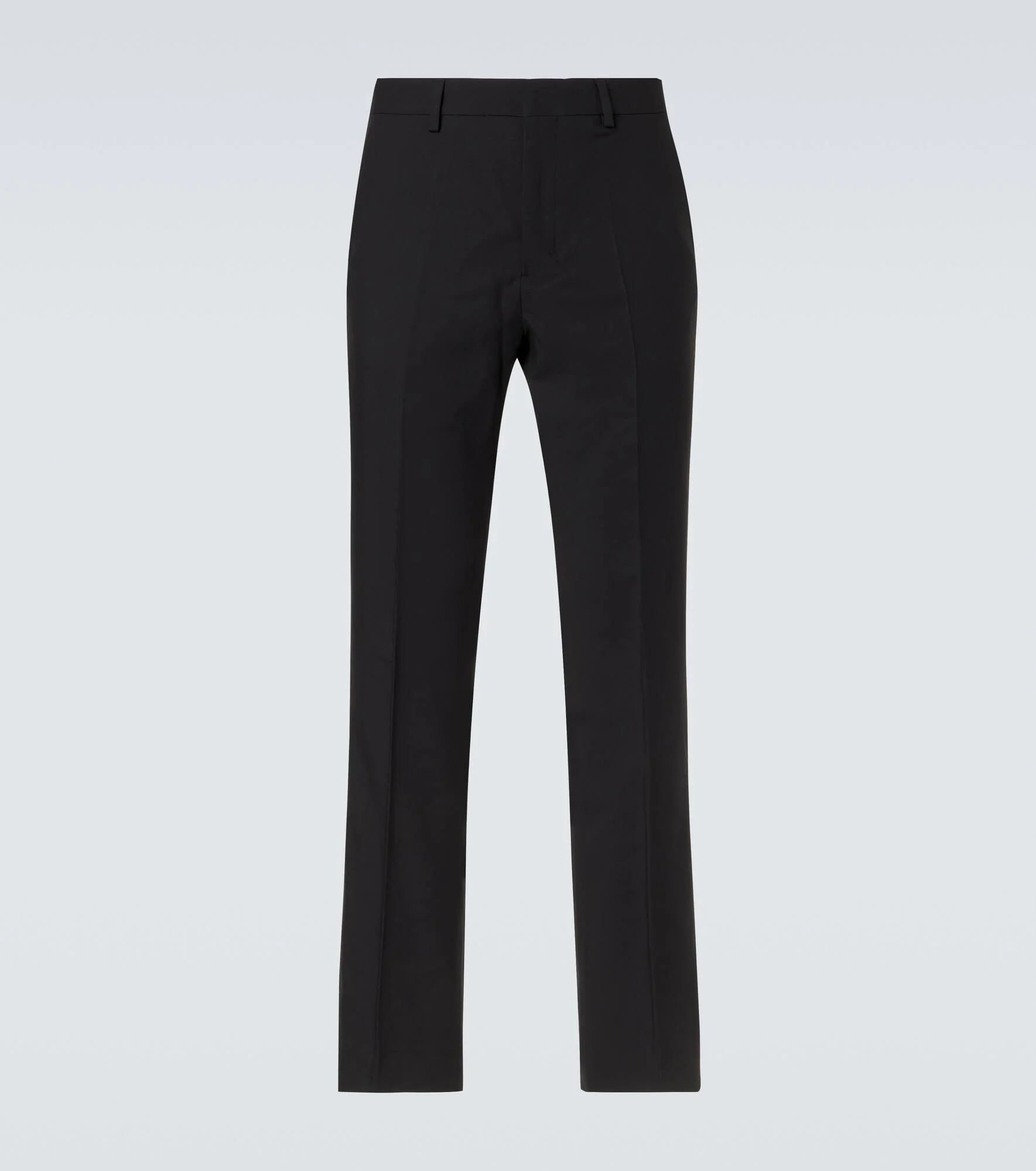 Ami Paris' Parisian nonchalance is the key ingredient for authentic and cool style. These pants are made from virgin wool gabardine to a straight silhouette. Product Details - Material: 100% virgin wool - Care instructions: dry clean - Made in Tunisia - Color: black - Designer color name: Noir - Lining: 100% polyester - Pocket lining: 65% polyester, 35% cotton - Contains non-textile parts of animal origin - Closure: zipper fly, button and hook fastenings - Pockets: slant pockets, back pockets - Item number: P01104954 Size & Fit - True to size - Non-stretchy fabric - Straight leg - The model in the picture is 185cm-6'1" and wearing a size FR 40