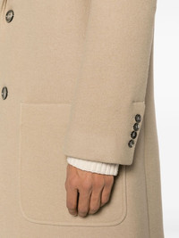 virgin wool single-breasted coat Highlights - Champagne - Virgin wool - Two front patch pockets - Chest welt pocket - Front button fastening - Peak lapels - Long sleeves - Straight hem Imported Composition Wool 100% Washing instructions Read Manufacturer Guidelines