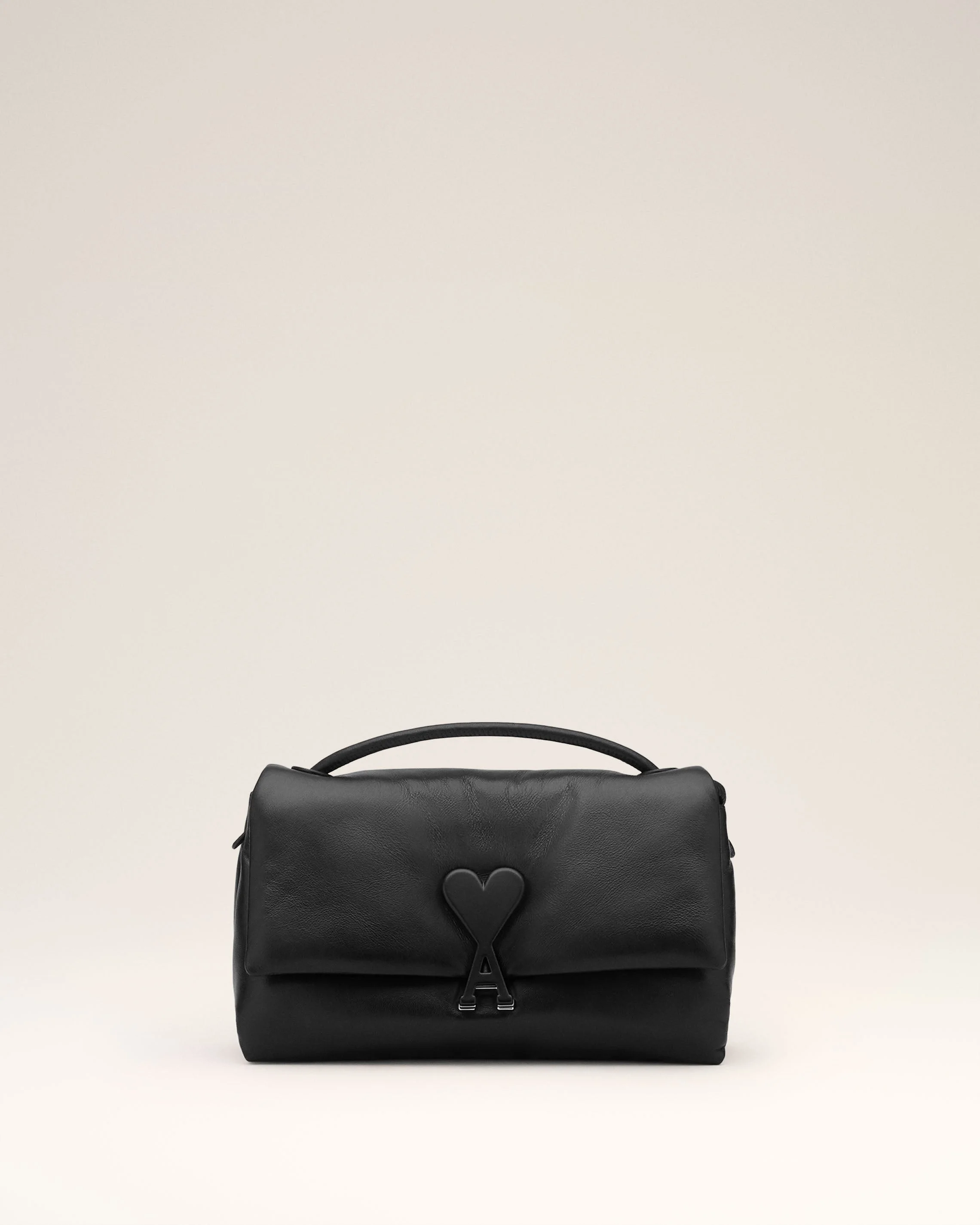Voulez-Vous Bag in smooth leather. Herringbone cotton canvas lining Ami de Coeur clasp One central compartment with one patched pocket Leather strap, crossbody or shoulder carry Metal hardware in vibrated silver color Size: 24x16x7.5 cm Made in Morocco (with love) REF : ULL163.AL0052.001 SIZE & FIT Size: 24x16x7.5 cm COMPOSITION & CARE GUIDE 100% Cow Leather Our leathergoods are made from delicate materials. To keep the original aspect of the leather as long as possible, please avoid contact with abrasive and oily substances. Make sure not to expose them at the direct light for too long and to wipe them with a soft and dry cloth when wet. To avoid deformations, insure to not overload them. Keep them in their dust bag and safe from humidity.