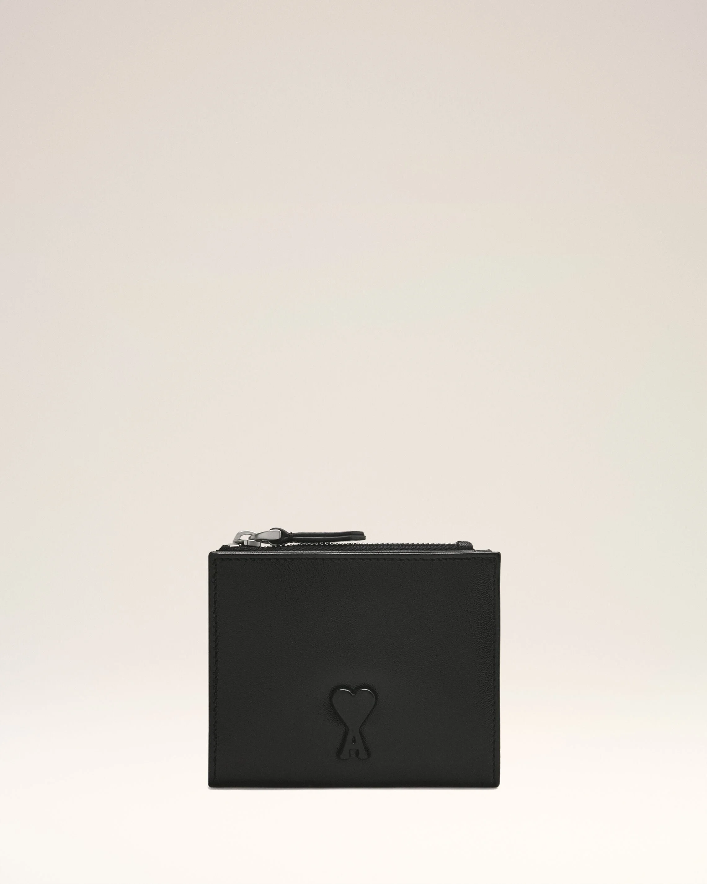 Voulez-Vous folded wallet in smooth leather. Herringbone cotton canvas lining Ami de Coeur stud Four card compartments and one note compartment One zipped coin pocket Snap button fastening Metal hardware in vibrated silver color Size: 10.5x8.5 cm Made in Morocco (with love) REF : USL201.AL0052.001 SIZE & FIT Size: 10.5x8.5 cm COMPOSITION & CARE GUIDE 100% Cow Leather Our leathergoods are made from delicate materials. To keep the original aspect of the leather as long as possible, please avoid contact with abrasive and oily substances. Make sure not to expose them at the direct light for too long and to wipe them with a soft and dry cloth when wet. To avoid deformations, insure to not overload them. Keep them in their dust bag and safe from humidity.