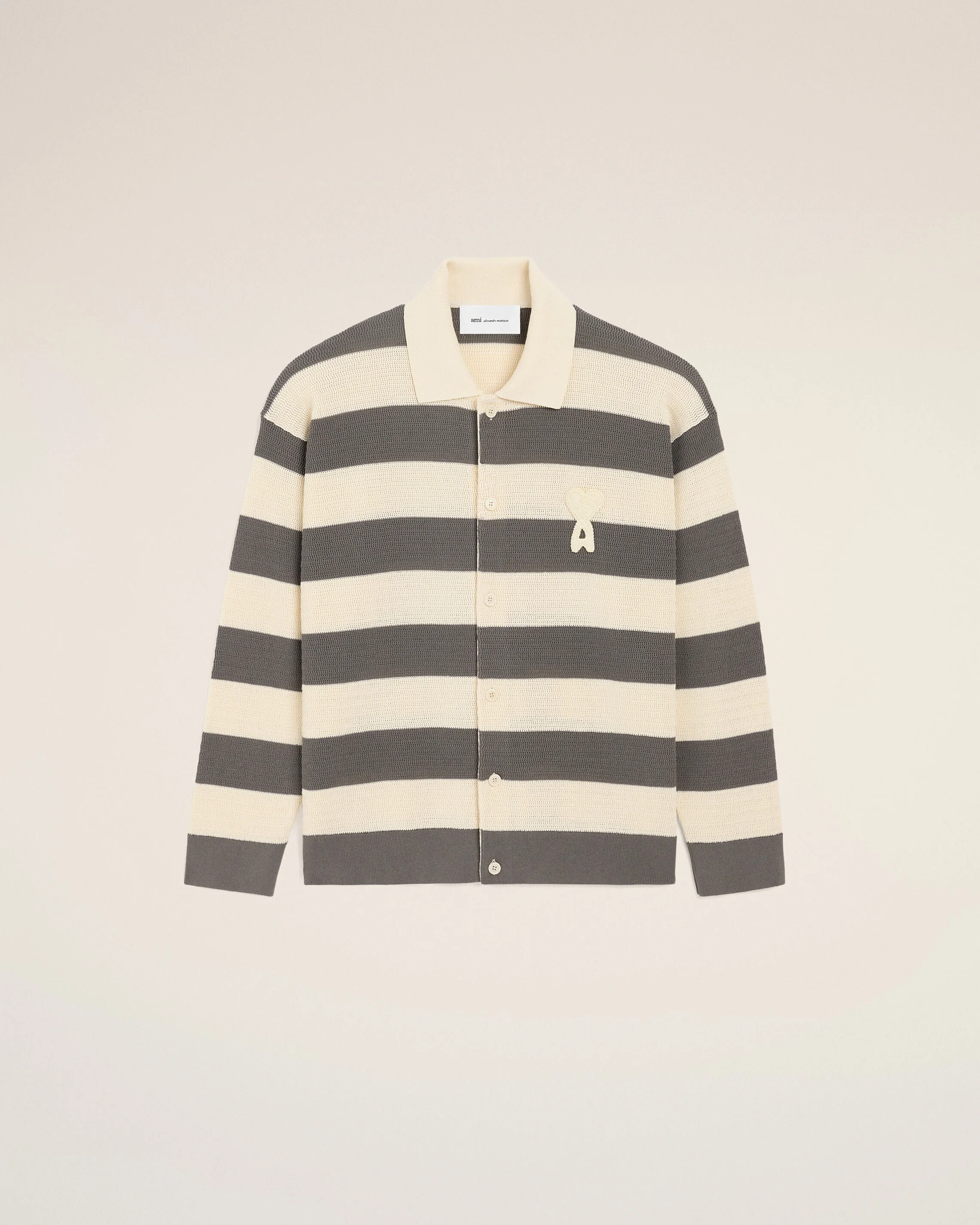 Cardigan in ajoure stripped cotton knit. Shirt collar Ami galalithe buttons Ami de Coeur crochet patch Ajoure stitch Made in Italy (with love) REF: HKC390.KN0153.A152 SIZE & FIT This item is designed to be worn lose. Take your normal size. Man model is 186 cm / 6"1 and is wearing a size M. COMPOSITION & CARE GUIDE Main Material : 100% Cotton Hand Wash Low Temperature Chlorine Prohibited Do Not Tumble Dry Dry Flat Cool Iron Dry Clean Possible Contains Non-Textile Parts Of Animal Origin