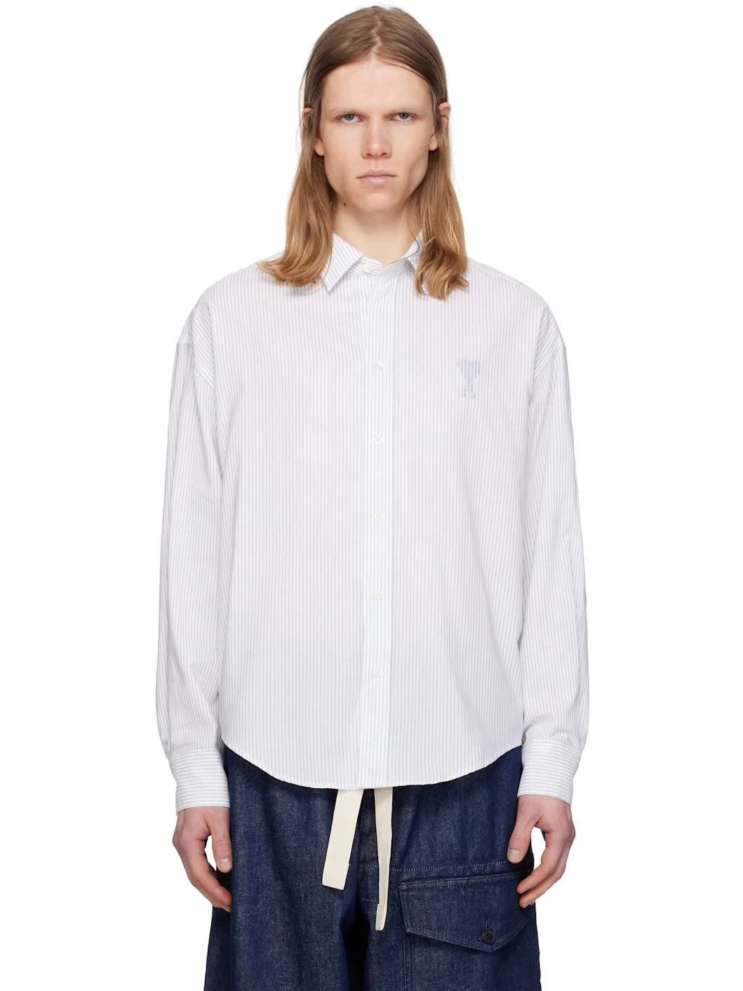Boxy-fit cotton poplin shirt. Stripes throughout. · Spread collar · Button closure · Logo printed at chest · Shirttail hem · Dropped shoulders · Pleated single-button barrel cuffs · Mother-of-pearl hardware Supplier color: White/Blue note 100% cotton. Made in Poland 251482M192019
