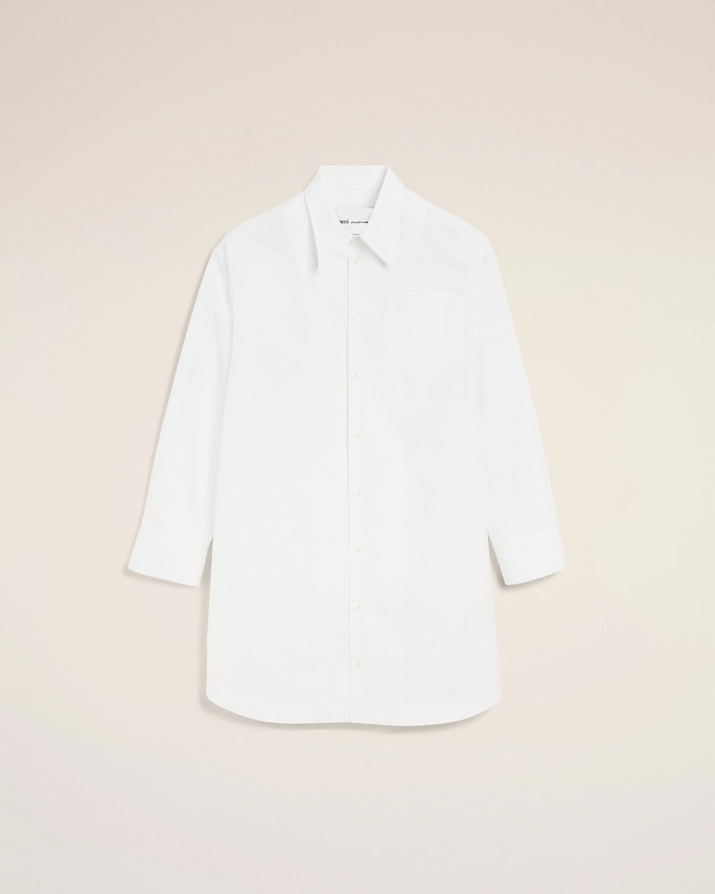 Long sleeve dress in cotton poplin. Unisexe product Wide fit Classic collar Long sleeves Front button placket Buttoned cuffs Mother of pearl buttons Middle back wardrobe detail with pleat Embossed Ami de Coeur on the chest pocket Made in Poland (with love) REF: UDR663.CO0063.100 SIZE & FIT This item is designed to be worn lose. Take your normal size. Woman model is 179 cm / 5"8 and is wearing a size XS. Man model is 188 cm / 6"1 and is wearing a size M. COMPOSITION & CARE GUIDE Main Material : 100% Cotton Chlorine Prohibited Dry Clean Gentle Cool Iron Machine Wash At 30°C Gentle Do Not Tumble Dry