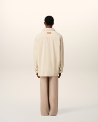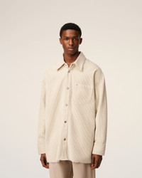 WHITE COTTON CORDUROY SIDE SLIT OVERSHIRT