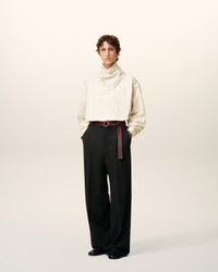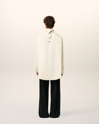 Top in cotton poplin with sewn on bandana collar. Unisex product Oversized fit Bandana collar Buttoned cuffs Mother of pearl buttons Horizontal Ami De Coeur silver plate under back gusset Center back length 87,2 (size XS) Center back length 90,2 (size M) Made in Bulgaria (with love) REF: UTP801.CO0063.185 SIZE & FIT This style is unisex and it's design to be worn oversize. Take your normal size. Man model is 186 cm / 6"1 and is wearing a size M. Woman model is 177 cm / 5"9 and is wearing a size XS. COMPOSITION & CARE GUIDE Main Material : 100% Cotton Chlorine prohibited Do not tumble dry Cool iron Machine wash at 30°c gentle Dry clean gentle