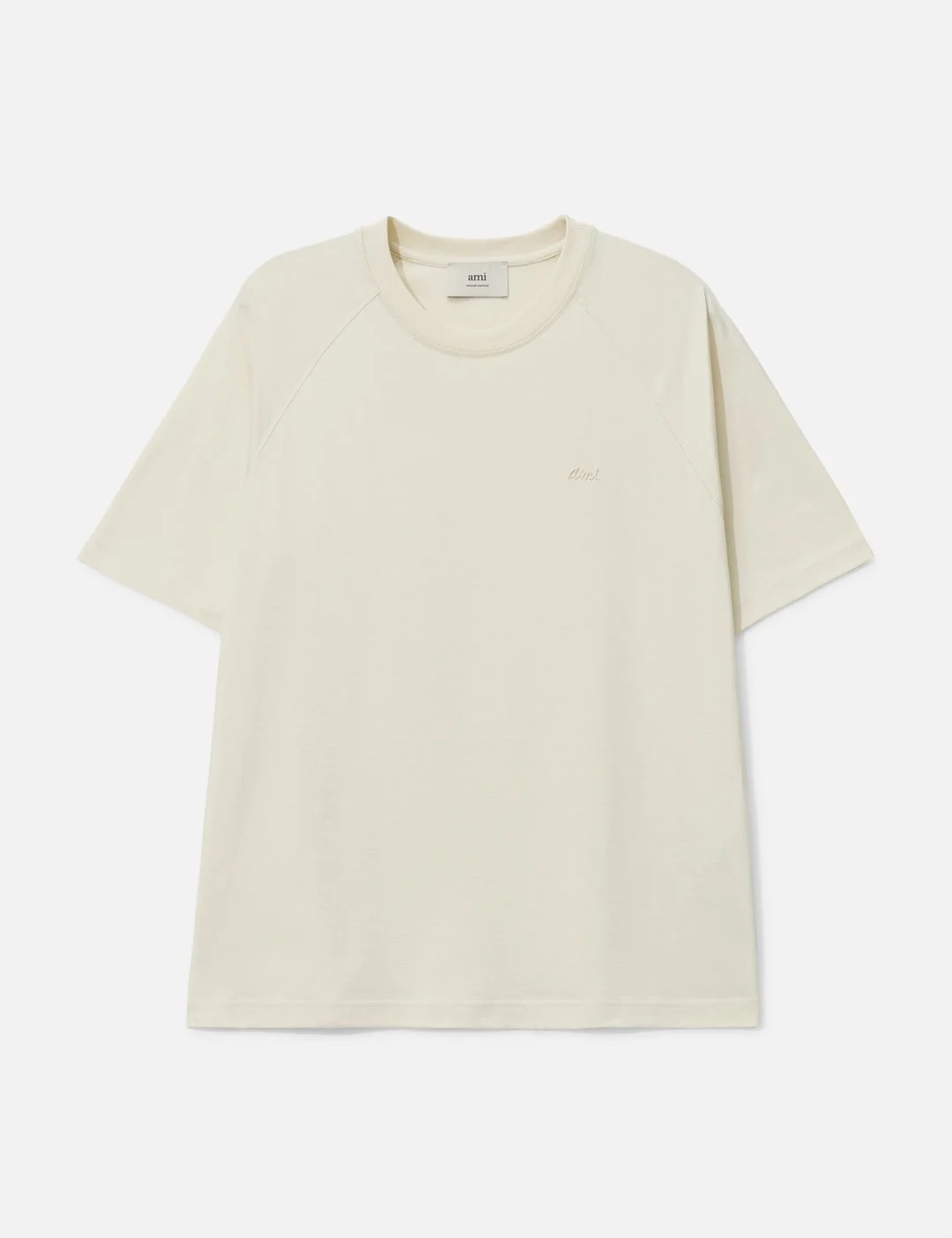 - Ami - White Cotton Short Sleeves T-shirt - Made from cotton - Relaxed fit - Crew neck - Raglan shoulder - Short sleeves - Tonal brand embroidery on left chest - Tonal brand embroidery under back neckline - Color: Ivory - Material: 100% Cotton - See more SS T-Shirts, T-Shirts and Clothing - Model wears size M - Model measures: Height 186cm, Chest 34”/86cm, Waist 28”/71cm, Hip 36”/91cm - Vendor Code: H25UTS334.JE0172