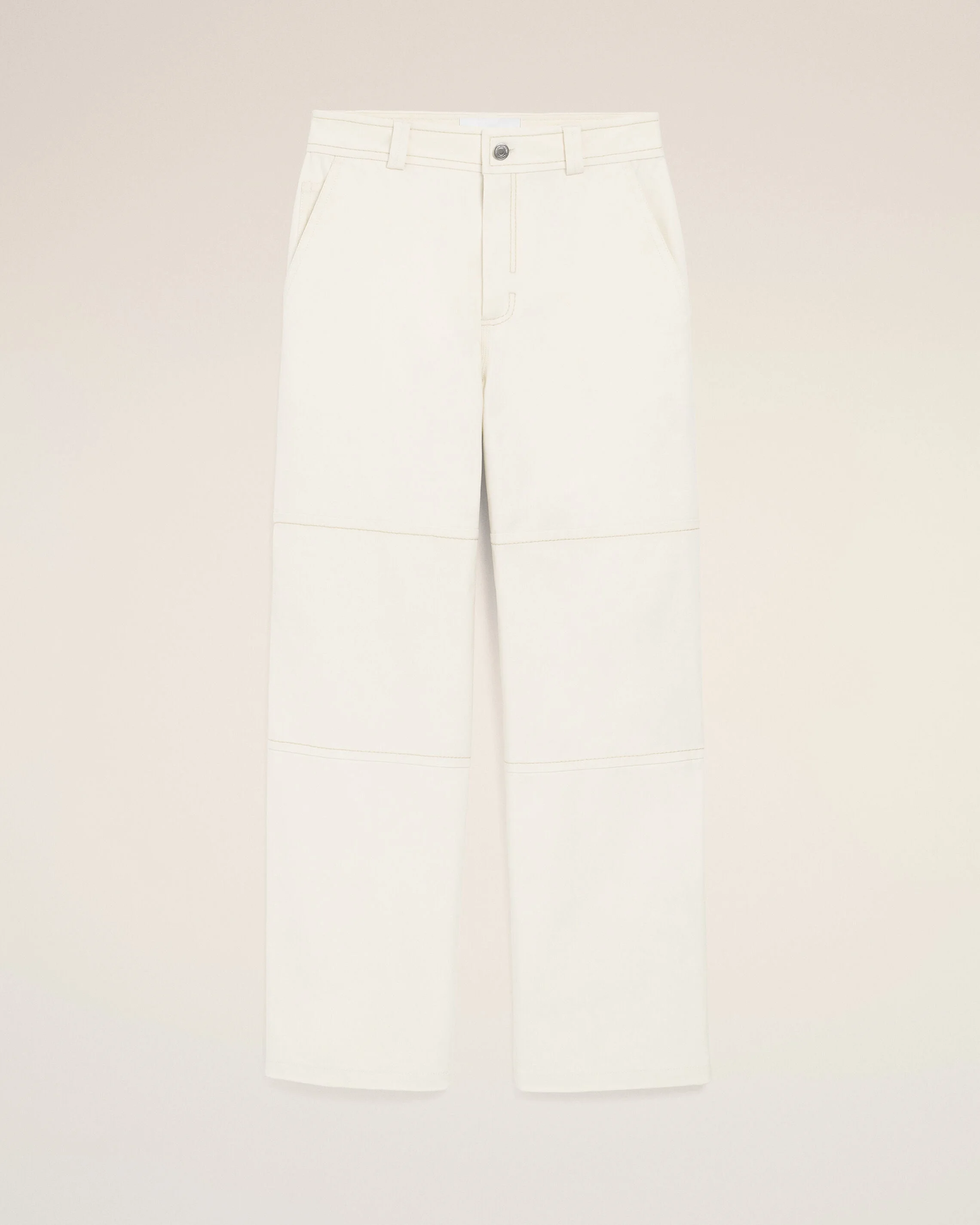 Workwear trousers in compact cotton canvas. Loose fit Regular waist Large leg Workwear details Zipped fly Denim metal buttons in nickel color at belt "ami alexandre mattiussi" paper jacron on the back Contrasted topstitches Made in Romania (with love) REF: HTR864.CO0211.136 SIZE & FIT This item is designed to be worn lose. Take your normal size. Man model is 187 cm / 6"1 and is wearing a size M. COMPOSITION & CARE GUIDE Main Material : 100% Cotton Pocket Lining : 65% Polyester, 35% Cotton Chlorine Prohibited Do Not Tumble Dry Dry Clean Gentle Cool Iron Do Not Wash