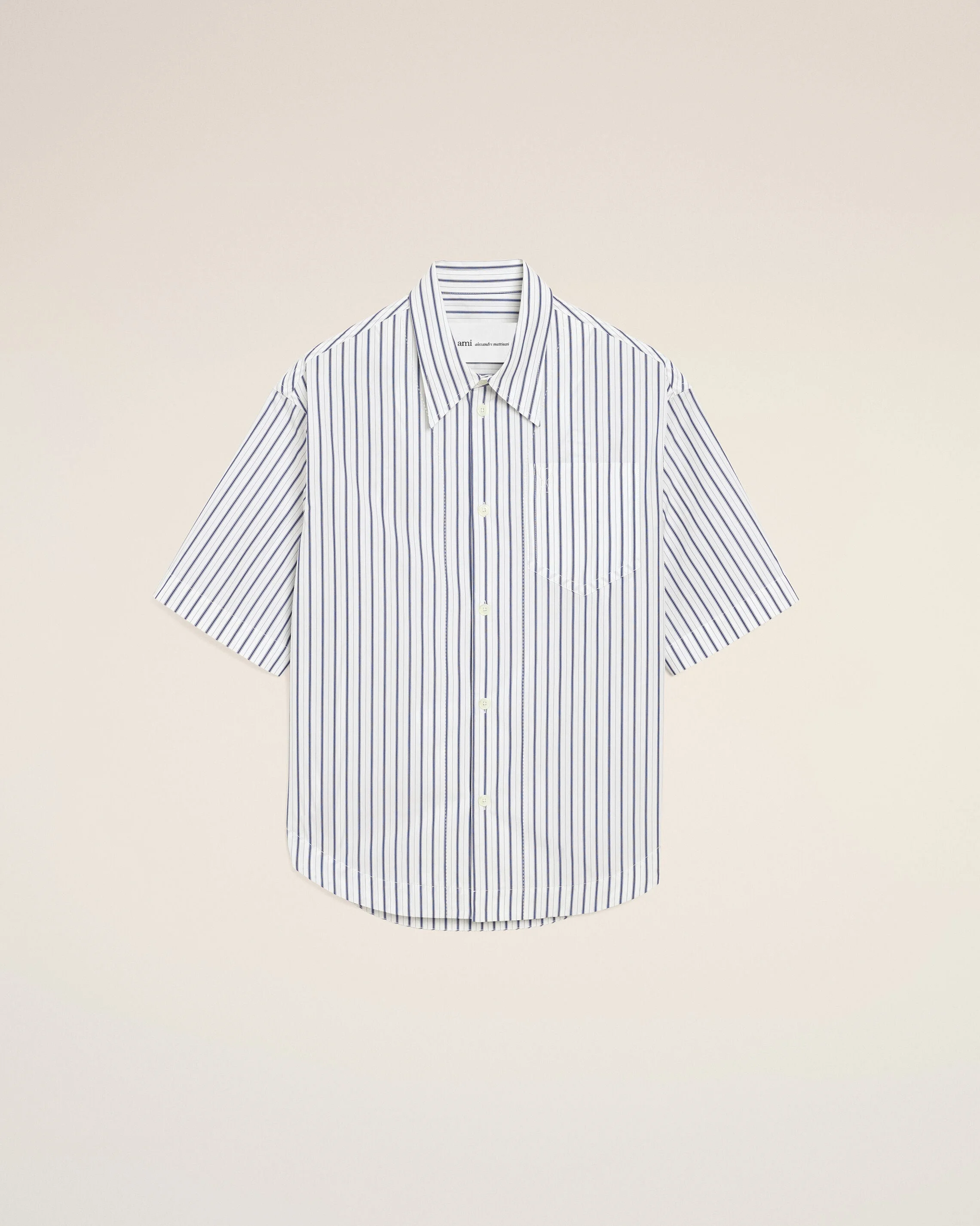 Short sleeve shirt in cotton popeline with double stripes. Unisex product Wide fit Classic collar Front buttoned placket Buttoned cuffs Embossed Ami de Coeur on the chest pocket Mother of pearl buttons Middle back wardrobe detail with pleat Made in Poland (with love) REF: USH809.CO0220.A074 SIZE & FIT This item is designed to be worn lose. Take your normal size. Woman model is 181 cm / 5"9 and is wearing a size XS. Man model is 187 cm / 6"1 and is wearing a size M. COMPOSITION & CARE GUIDE Main Material : 100% Cotton Machine Wash At 30°C Chlorine Prohibited Do Not Tumble Dry Medium Iron Dry Clean Possible Wash Inside Out Wash With Similar Colours Contains Non-Textile Parts Of Animal Origin