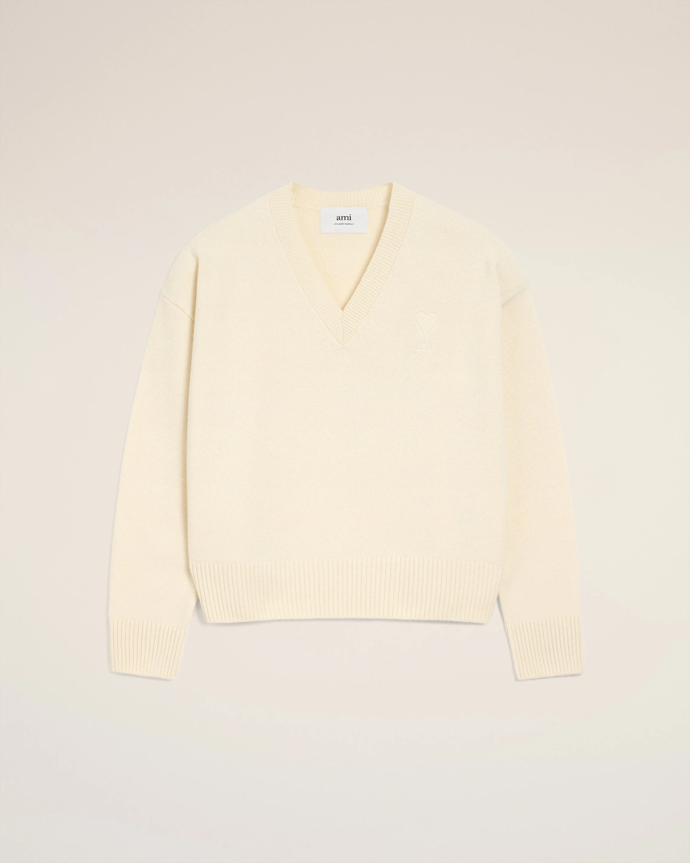 WHITE WOOL AMI DE COEUR V NECK SWEATER