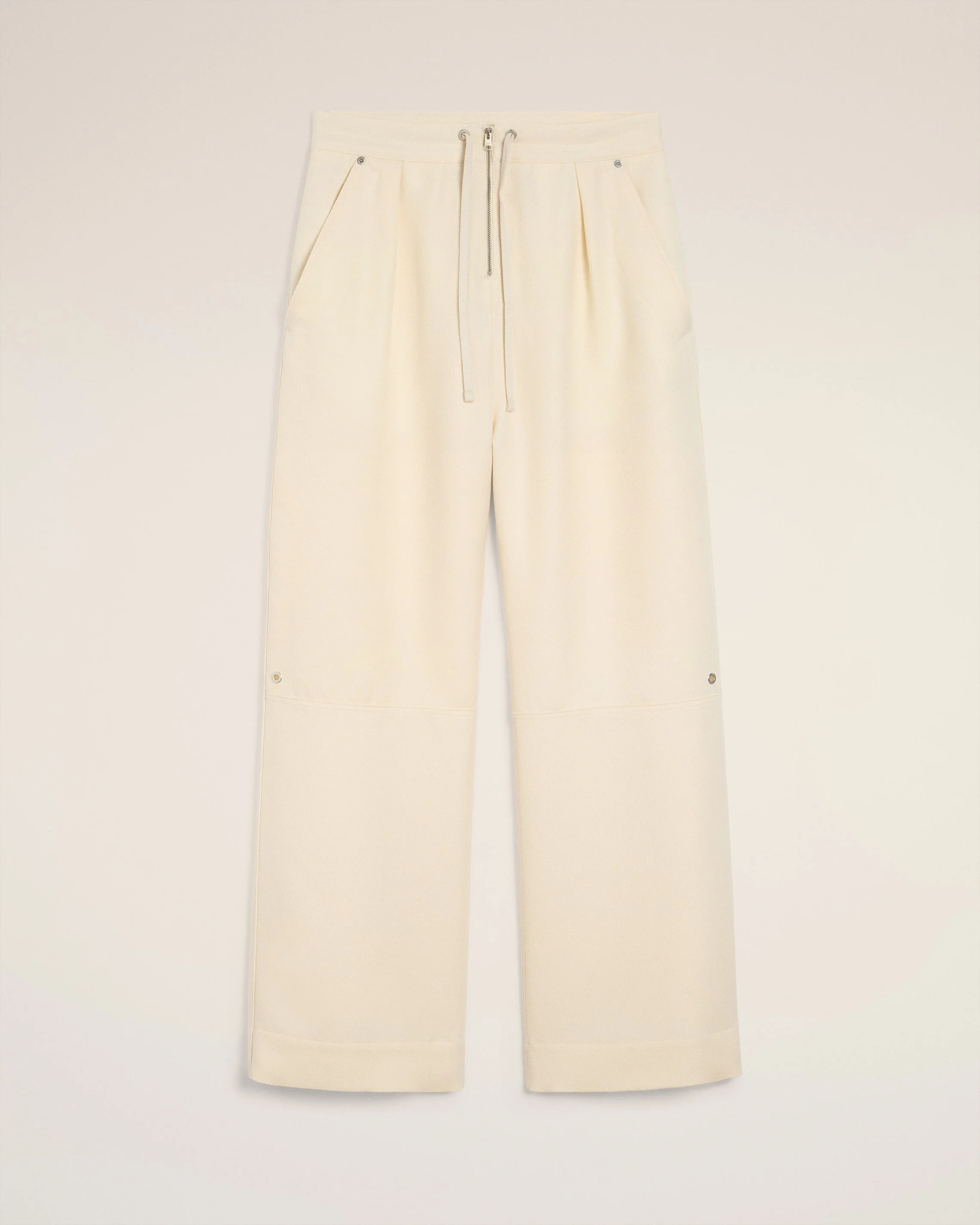 Zipped trousers in wool gabardine. Wide fit Visible zipped fly Pockets with invisible snap buttons "ami alexandre mattiussi" leather label on the back Drawstrings at the belt Details with metal eyelets and studs 33 cm bottom leg width (size M) Made in Portugal (with love) REF: HTR832.WV0088.185 SIZE & FIT This item is designed to be worn lose. Take your normal size. Model is 186 cm / 6"1 and is wearing a size M. COMPOSITION & CARE GUIDE Main Material : 100% New Wool Pocket Lining : 65% Polyester 35% Cotton Do not wash Chlorine prohibited Do not tumble dry Cool iron Dry clean gentle Contains non-textile parts of animal origin