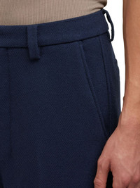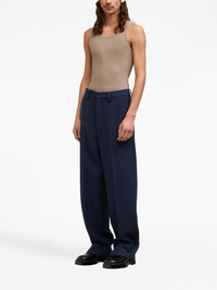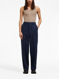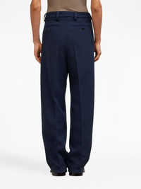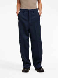 straight-leg tailored trousers Highlights - Navy blue - Wool blend - High waist - Belt loops - Hook and zip fly fastening - Two side inset pockets - Two rear button-fastening jetted pockets - Pressed crease - Straight leg Imported Composition Wool 90%, Polyamide 10% Washing instructions Dry Clean Only
