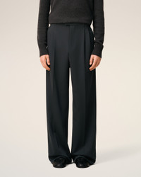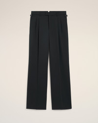 BLACK WOOL LOW WAIST WIDE TROUSERS
